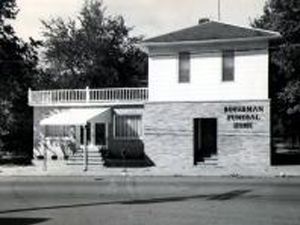 On December 15, 1930, Mr. Bowerman opened his new and modern chapel at the current location on Main Street in the building which had for more than 30 years been the home and office of Dr. J. H. Herring, who had purchased the home from his father-in-law, F. M. Hinkle, who was the postmaster for the village.
